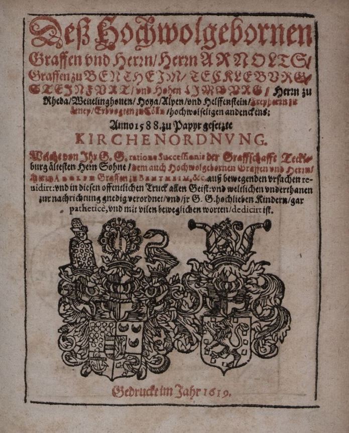 Titelblatt der Bentheim-Tecklenburger Kirchenordnung von 1588 (Druck 1619).