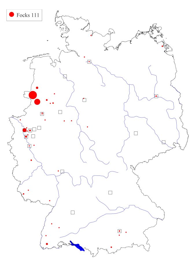 Verbreitung des Namens Focks in Deutschland.