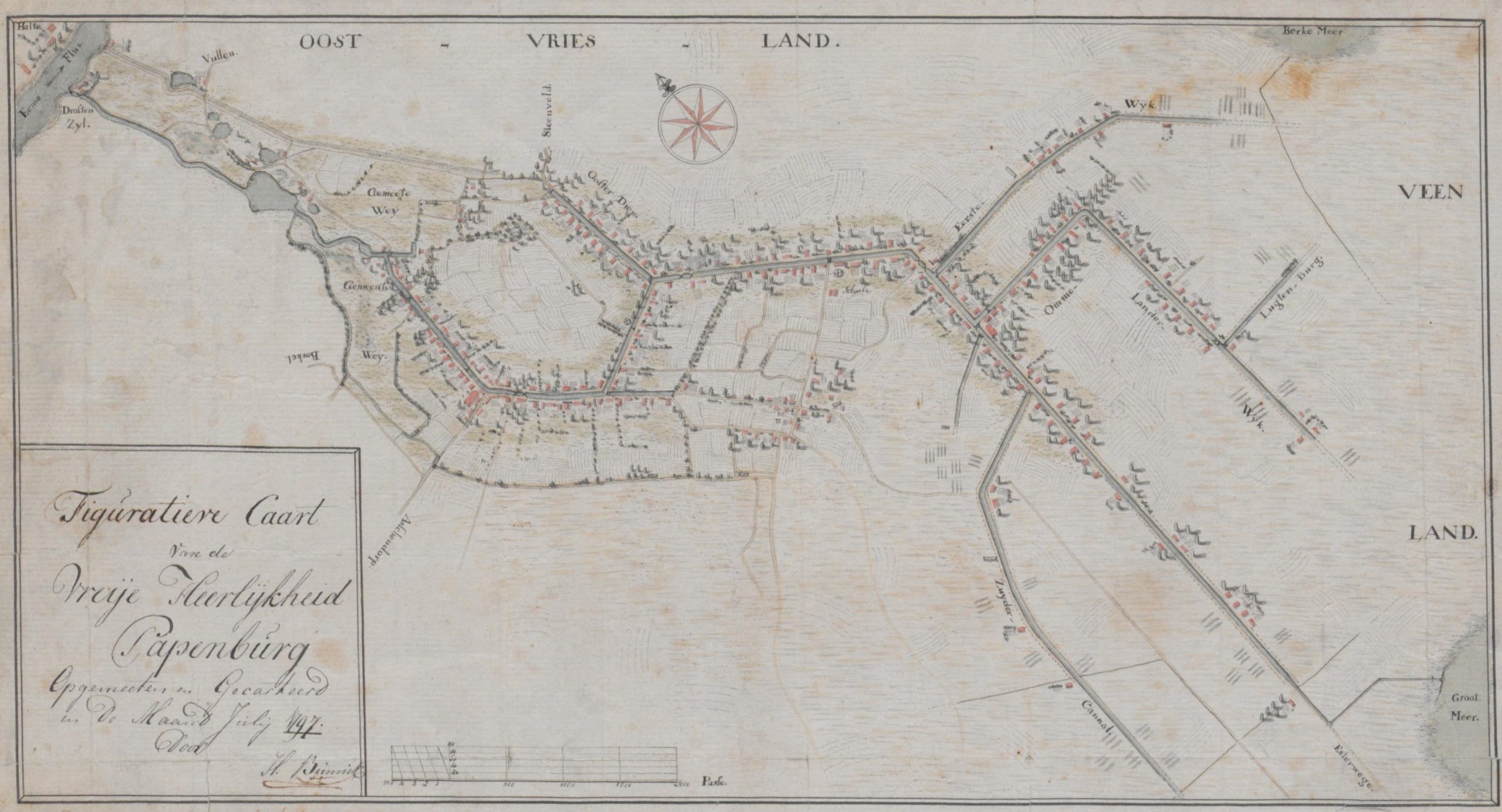 Figurative Caart van de vreye Heerlykheid Papenburg 1797. Landesarchiv NRW, Abteilung Westfalen, Karten A (Allgemein), Nr. 8831.