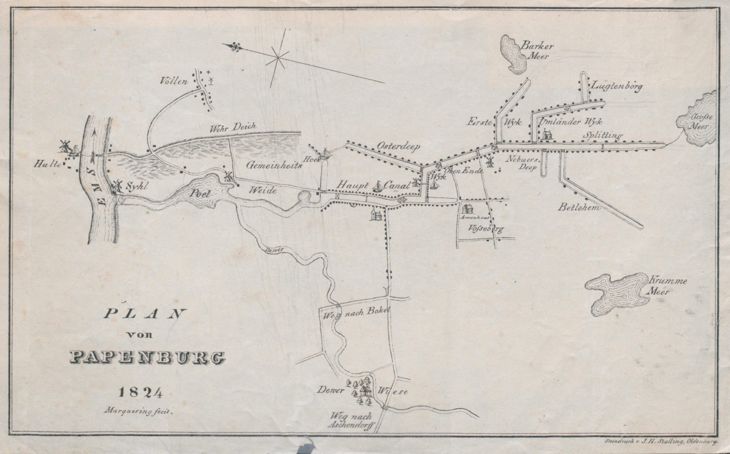 Ortsplan von Papenburg 1824. Landesarchiv NRW, Abteilung Westfalen, Karten A (Allgemein), Nr. 9055.