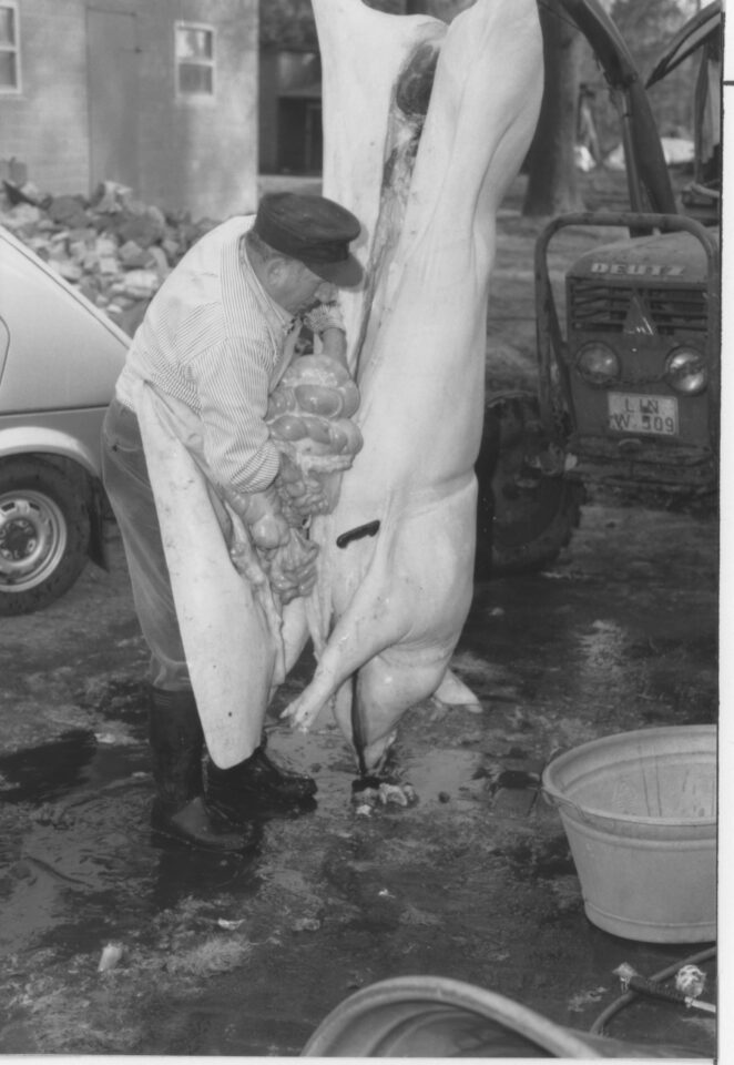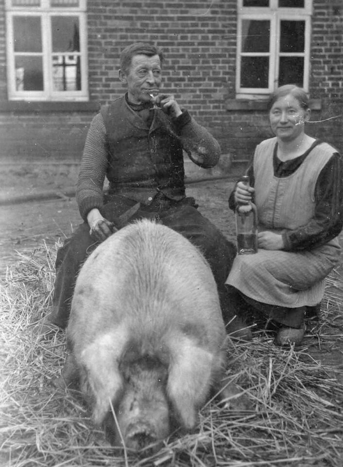 Wenn es draußen kalt wurde und der Winter vor der Tür stand, rückte auf dem Bauernhof ein wichtiger Termin näher: das Schlachten. Meist um Martini herum (11. November), manchmal auch im Februar, war es ein zentraler Bestandteil der bäuerlichen Selbstversorgung. Ein Schwein – oder sogar mehrere – zu schlachten bedeutete Arbeit, Anstrengung und Verantwortung. Gleichzeitig vermittelte es aber auch ein beruhigendes Gefühl: Nun war für den Winter und das kommende Jahr vorgesorgt. Und weil man an diesen Tagen etwas üppiger aß als sonst und auch die Nachbarn Anteil nahmen, wurde das Schlachten vielerorts als eine Art Fest empfunden.