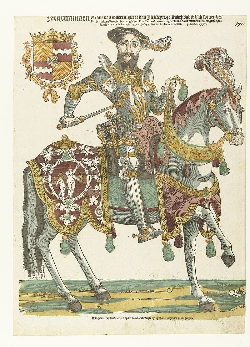 Porträt Maxililians von Büren (1500-1548) zu Pferd. Holzschnitt aus den frühen 1540er Jahren. Emslandmuseum Lingen.